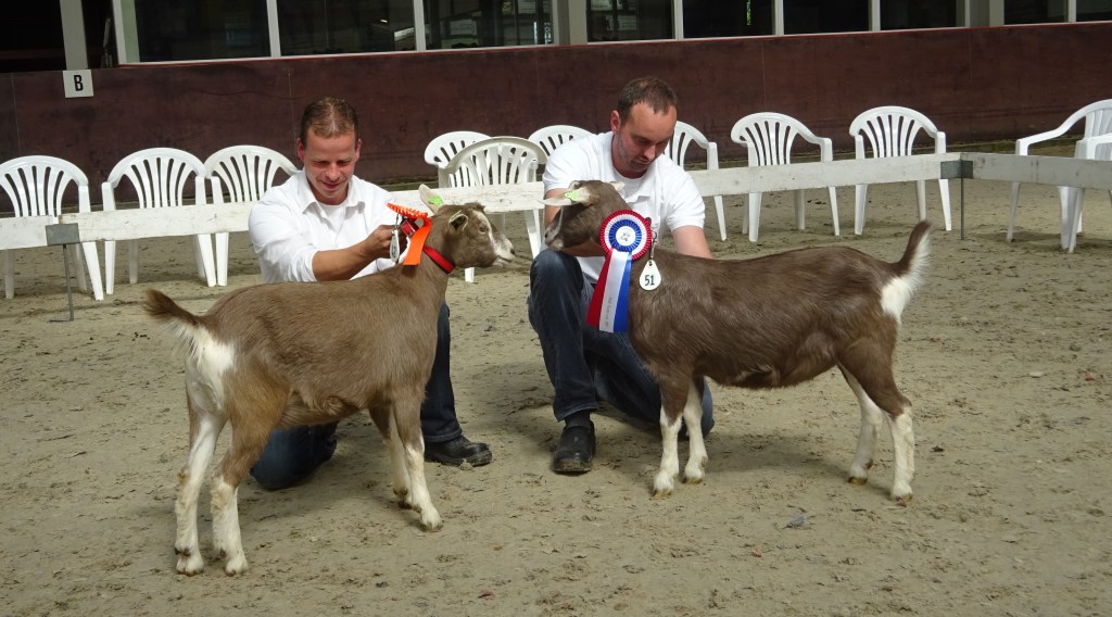 DSC07985.JPG- toggenburger kampioen lammeren. 2017 Heeten. Kampioen is Sweelhoeve Eline 18 van gebr. Popken en reserve kampioen is Suzanne 72 van J.C. Vonk.